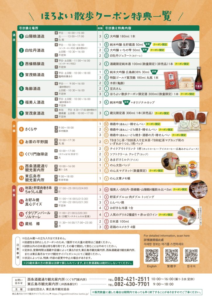 ・イープラスeplus.jpもご利用いただけます ※発券した引換券を東広島市観光案内所(JR西条駅2階)でクーポンに引き換えてください